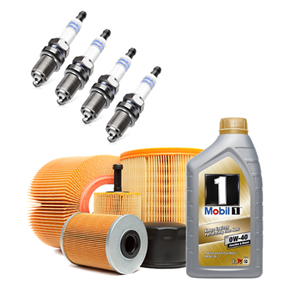 Kit tagliando tre filtri, olio motore MOBIL 0W40 e candele accensione (PR3934/18)